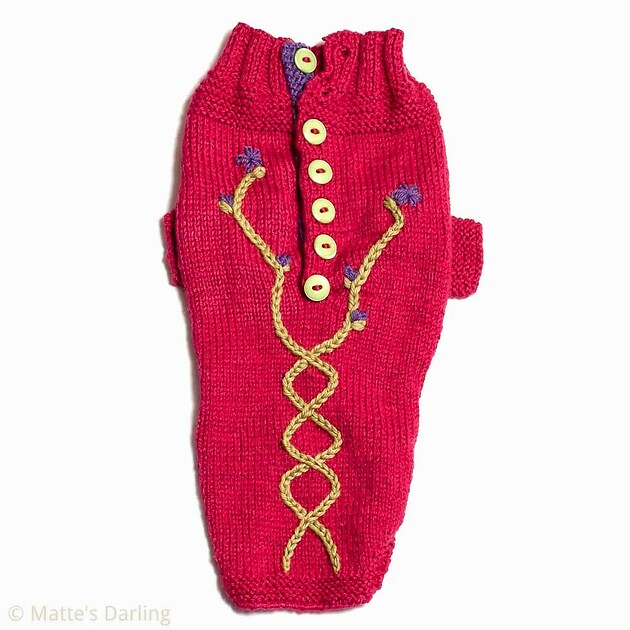 This cerise sweater, really stand out, with it`s contrasting embroidery.