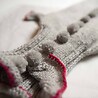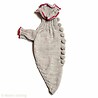 The rib knit turtle neck, has a wound up edge, finished with a cerise embroidery, as well as the sleeves.