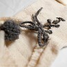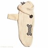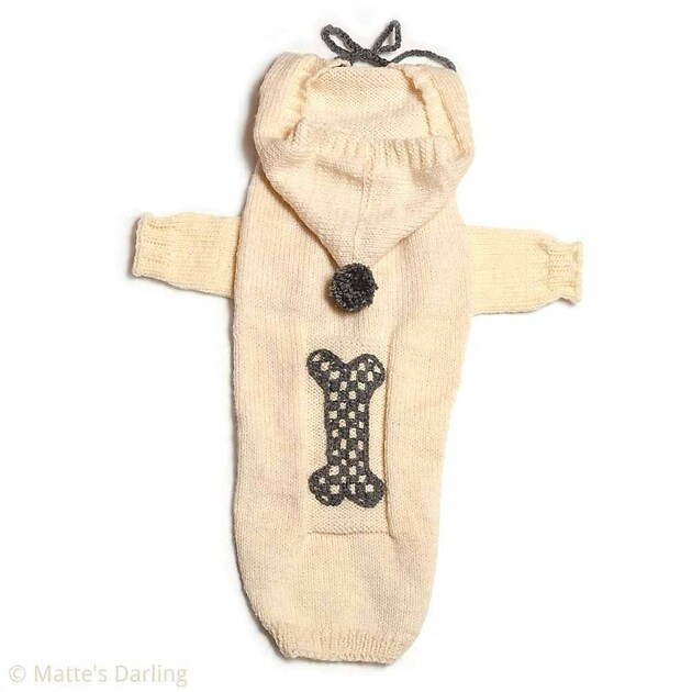 The back of the sweater is embroidered with a checkered boone, on a purl knit square.