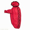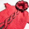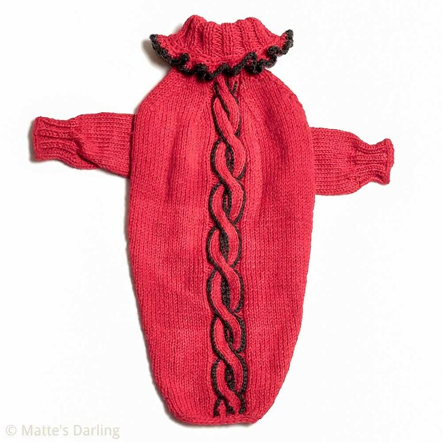 At the edge of the rib knit collar, is a croched flounse with a black finish.